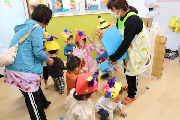 今日は9月のお誕生会とお月見集会でした。第二保育室にはお誕生日のお友だちはいなかったのですが、北小金保育室には2名のお誕生日を迎えたお友だちがいたので、みんなでお祝いをしました!お誕生会のあとにはお月見集会を行い、今年の「中秋の名月」は10月6日ということで少し早めではありましたが、お月見の話を聞いたり、「ねこのピート」の出し物を見て楽しい時間を過ごしました♪