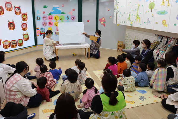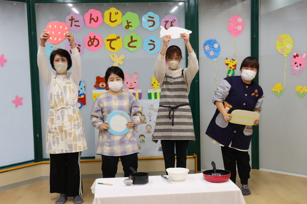 1月のお誕生会を行いました。今月はお誕生日のお友だちが多く、第二さんは4名!1歳児のお友だち3名は泣かずにみんなの前に出てくることが出来、成長を感じました・・・!!そして2歳児のお友だちは、インタビューに自分の言葉で答えることが出来、とてもかっこよかったです♪職員からの出し物は1月ということで、十二支のパネルシアターでした。順番に出てくる生き物に興味津々で見入っていた子どもたちでした☆