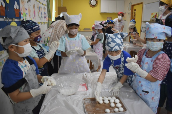 お月見団子作り、お月見集会、引き渡し避難訓練